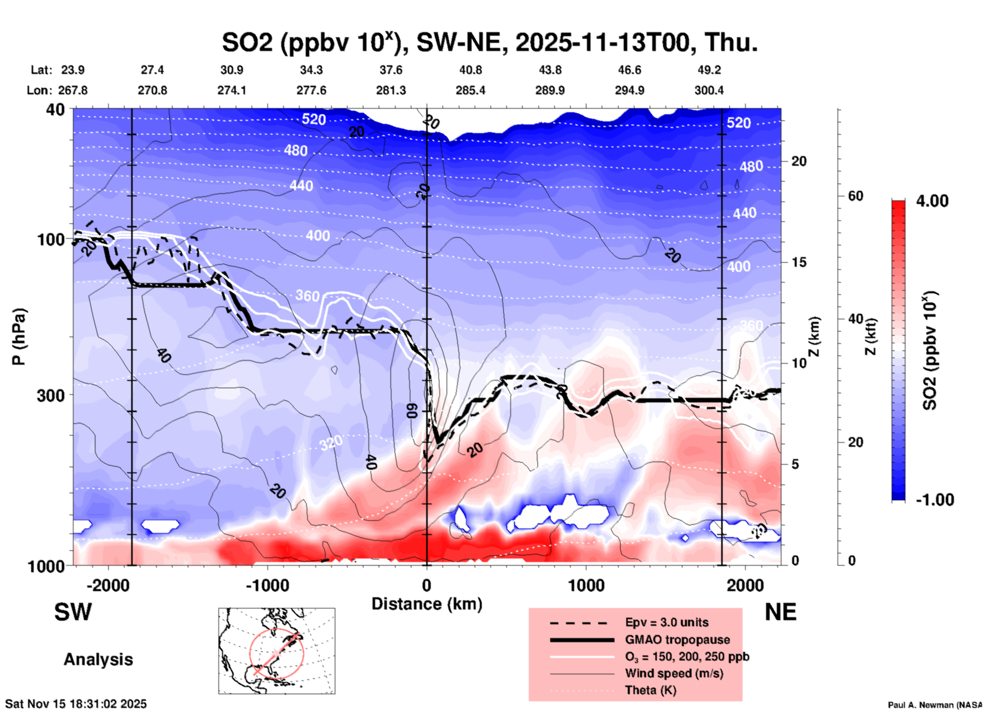 GSFC Met Animation for ACCLIP: SO2: SW-NE X-Section